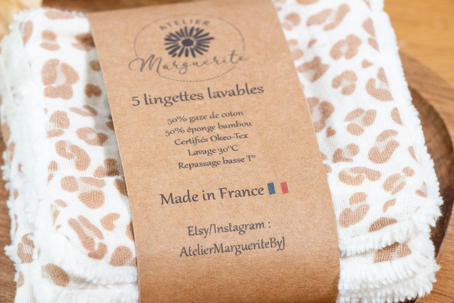 Les lingettes mesurent environ 10 cm x 10 cm (une légère variation de millimètres peut arriver car cousu main)